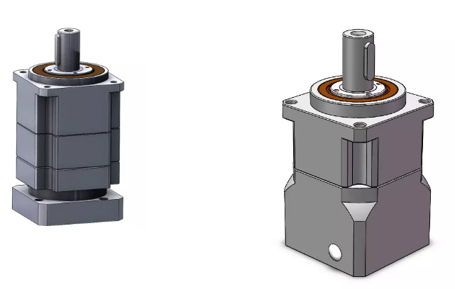 機(jī)身外觀同為四方形減速機(jī),上蓋板與內(nèi)齒圈為一體,下蓋板與連接板為一體的方形斜齒減速機(jī)。